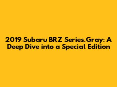 Hey car enthusiasts! Today, we're diving deep into a real gem: the 2019 Subaru BRZ Series.Gray. This isn't your everyday BRZ; it's a special edition that brought some serious style and performance upgrades to the table. If you're a fan of sporty coupes, you're going to love what we've got in store. Let's get down to the details, shall we?