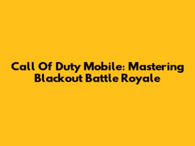 Call Of Duty Mobile: Mastering Blackout Battle Royale
