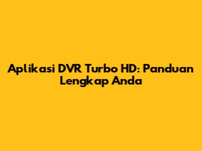 Aplikasi DVR Turbo HD: Panduan Lengkap Anda