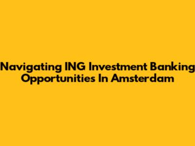 Navigating ING Investment Banking Opportunities In Amsterdam