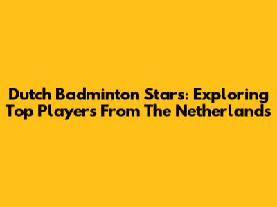 Dutch Badminton Stars: Exploring Top Players From The Netherlands