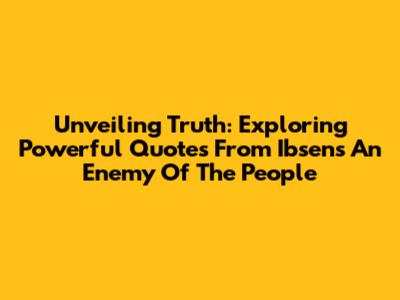Unveiling Truth: Exploring Powerful Quotes From Ibsen's 'An Enemy Of The People'