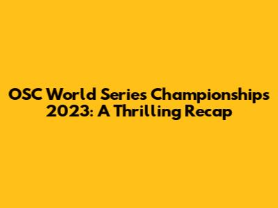 OSC World Series Championships 2023: A Thrilling Recap