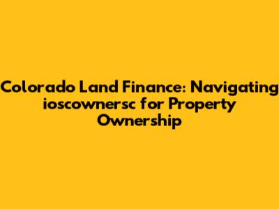 Colorado Land Finance: Your Guide To Ioscownersc