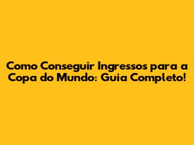 Como Conseguir Ingressos Para A Copa Do Mundo: Guia Completo!
