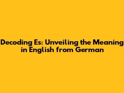 Hey everyone! Ever stumbled upon the word "es" while navigating the German language and found yourself scratching your head, wondering, "es meaning in English from German?" Well, you're in the right place! Today, we're diving deep into the fascinating world of "es," exploring its various roles, and uncovering how it translates into English. Get ready to have your German-to-English vocabulary boosted and your understanding of German grammar sharpened. Let's get started, shall we?