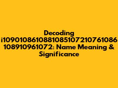Decoding I1090108610881085107210761086 108910961072: Name Meaning & Significance