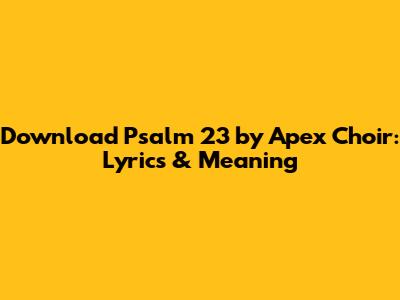 Hey everyone! Today, we're diving deep into a timeless classic: Psalm 23, beautifully performed by the Apex Choir. If you're looking to download Psalm 23 by Apex Choir, you're in the right place! We'll explore the lyrics, the profound meaning behind them, and where you can find this soul-stirring rendition. Get ready to be uplifted! Psalm 23 is a cornerstone of faith for many, offering comfort, hope, and reassurance. The Apex Choir's interpretation adds a layer of richness that resonates with listeners of all backgrounds. This isn't just about downloading a song; it's about connecting with a powerful message of faith and trust.