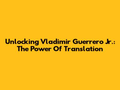 Unlocking Vladimir Guerrero Jr.: The Power Of Translation
