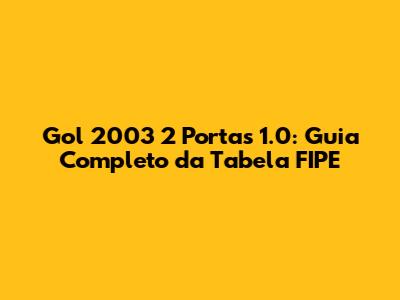 Hey guys, let's dive into the fascinating world of car valuations, specifically focusing on the Gol 2003 2 portas 1.0! Understanding the FIPE table is super important whether you're looking to buy, sell, or just stay informed about the value of your vehicle. This comprehensive guide will break down everything you need to know about the FIPE table for the Gol 2003 2 portas 1.0, making the whole process easier to understand.