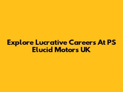 Explore Lucrative Careers At PS Elucid Motors UK
