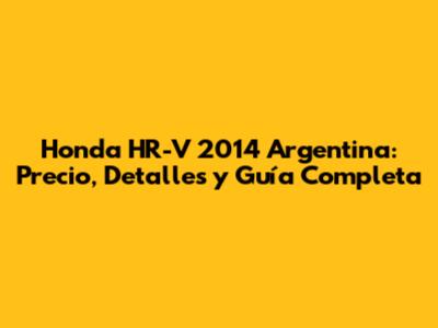 Honda HR-V 2014 Argentina: Precio, Detalles Y Guía Completa