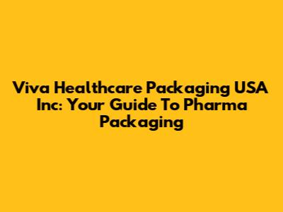 Viva Healthcare Packaging USA Inc: Your Guide To Pharma Packaging