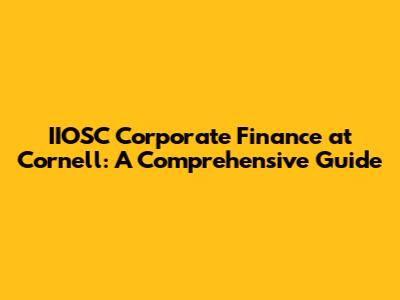Hey guys! Ever wondered about diving into the world of corporate finance, especially at a prestigious institution like Cornell? Well, you've come to the right place! This guide will walk you through everything you need to know about the IIOSC (that's the inter-institutional open source collaboration, by the way) and corporate finance opportunities at Cornell University. Whether you're a student considering your academic path, a professional looking to enhance your knowledge, or just someone curious about finance, buckle up – we're about to break it all down in a friendly and accessible way. Let's get started and explore the exciting world of finance at Cornell!
