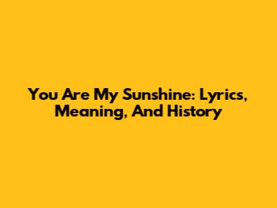 You Are My Sunshine: Lyrics, Meaning, And History