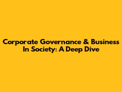 Corporate Governance & Business In Society: A Deep Dive