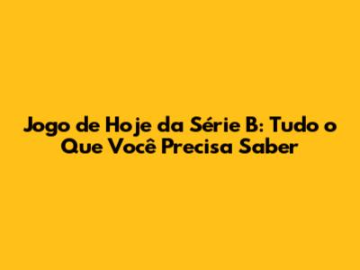 Jogo De Hoje Da Série B: Tudo O Que Você Precisa Saber