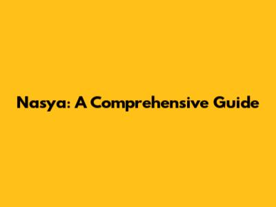 Nasya: A Comprehensive Guide