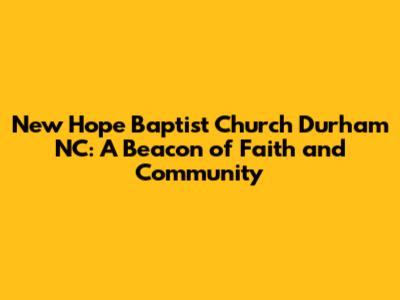 Hey everyone, let's dive into something super important in Durham, North Carolina: New Hope Baptist Church. It's not just a church, guys; it's a cornerstone of the community. We're gonna explore its history, what makes it special, and why it matters so much to so many people. Think of it as your friendly guide to everything New Hope. We'll be talking about its impact on the local scene and the people it serves. Buckle up, because we're about to go on a journey that's both inspiring and informative.