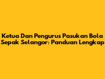 Ketua Dan Pengurus Pasukan Bola Sepak Selangor: Panduan Lengkap