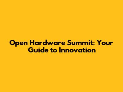Open Hardware Summit: Your Guide To Innovation