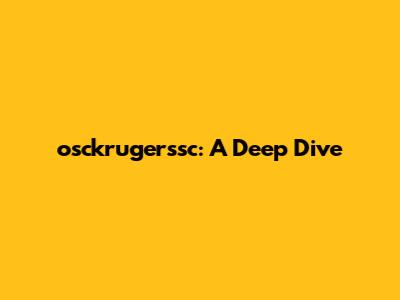 The Significance of osckrugerssc in Today's World