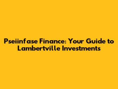 Pseiinfase Finance: Your Guide To Lambertville Investments