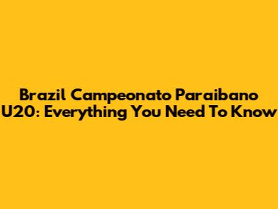 Brazil Campeonato Paraibano U20: Everything You Need To Know