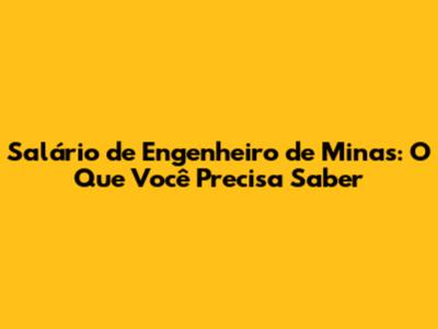 Salário De Engenheiro De Minas: O Que Você Precisa Saber
