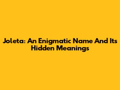 Joleta: An Enigmatic Name And Its Hidden Meanings