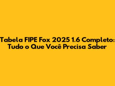 Hey, pessoal! Se você está de olho no Fox 1.6 completo e quer saber tudo sobre a Tabela FIPE de 2025, você chegou ao lugar certo. Neste guia super completo, vamos mergulhar nos detalhes da tabela FIPE, entender como ela funciona, por que é importante e, claro, como você pode usar essa ferramenta para tomar as melhores decisões na hora de comprar, vender ou negociar o seu Fox. Prepare-se para desvendar todos os segredos e dicas que vão te deixar por dentro do mundo automotivo! Afinal, ninguém quer ser pego de surpresa, né?