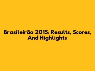 Brasileirão 2015: Results, Scores, And Highlights