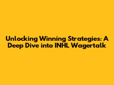 Unlocking Winning Strategies: A Deep Dive Into INHL Wagertalk