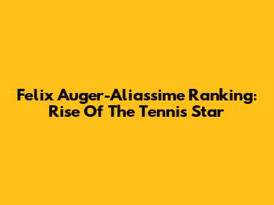Felix Auger-Aliassime Ranking: Rise Of The Tennis Star