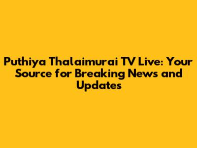 Hey guys! Are you looking to stay updated with the latest Tamil Nadu news and current affairs? Look no further! Puthiya Thalaimurai TV is your go-to channel for real-time news, in-depth analysis, and comprehensive coverage of events shaping the region. In this article, we'll dive into why Puthiya Thalaimurai TV is a popular choice for news viewers and how you can easily access their live broadcasts.