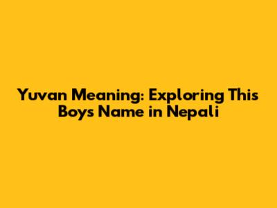 Yuvan Meaning: Exploring This Boy's Name In Nepali